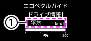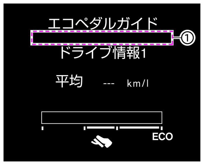 アドバンスドドライブアシストディスプレイでエコペダルガイドを表示して走行しているとき、アクセルペダル操作に応じてエコインジケータ(1)が3段階で点灯します。