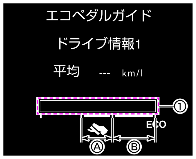 アクセルペダルの踏み加減をエコ運転領域(A)に入るように調整することで、燃費向上につながります。