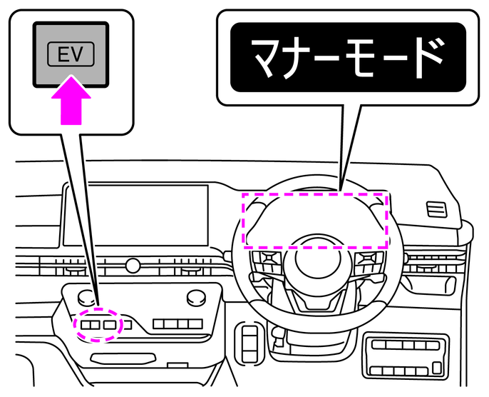 走行可能表示灯が点灯しているとき、EVモードスイッチを押すたびにマナーモードのON・OFFが切り替わります。