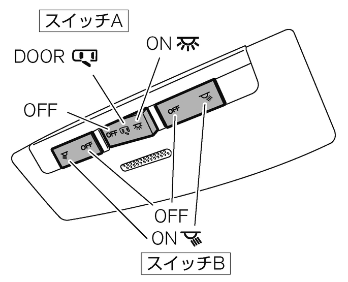 スイッチAが中立のとき、ドア(デュアルバックドアを除く)を開けると点灯し、閉めると消灯します。 |