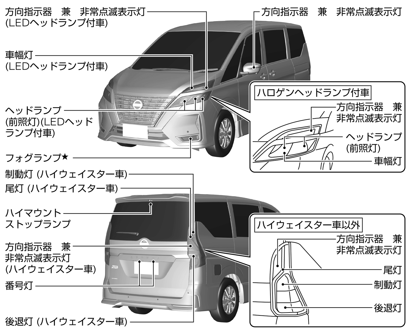 ヘッドランプ、制動灯などは、雨天走行や洗車などにより、レンズ内面が一時的にくもることがあります。また、ヘッドランプ内と外気との温度差により、レンズ内面が結露することもあります。これは雨天時などに窓ガラスがくもるのと同様の現象で、機能上の問題ではありません。また、レンズの構造上、レンズのふちに水滴が付着することがありますが、機能上の問題ではありません。ただし、ランプ内に水がたまっている場合やレンズ内面に大粒の水滴が付着している場合は、日産販売会社にご相談ください。