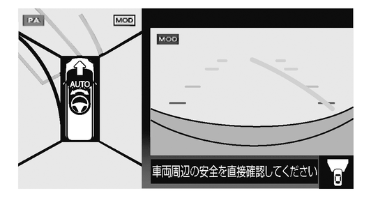 (進行方向に車両や障害物がある場合、インテリジェント パーキングアシスト(駐車支援システム)が正しく機能せず解除されることがあります。)