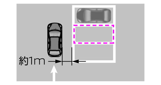 ゆっくりと前進し、駐車したい場所の1mほど横に停車します。