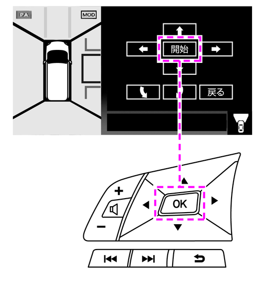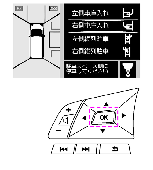 駐車方法を選び、ステアリングスイッチの