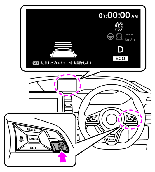 ・アドバンスドドライブアシストディスプレイにプロパイロットの状態が表示されます。