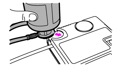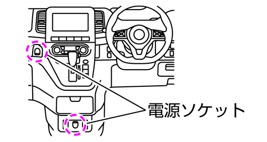 コンプレッサーのスイッチがOFF (「○」の位置)であることを確認し、電源プラグを車室内の電源ソケットに差し込みます。