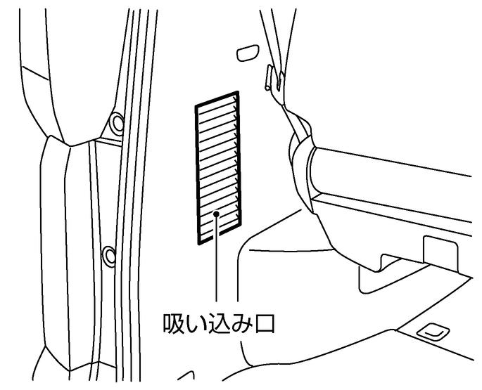 ラゲッジルームにある吸い込み口を荷物などでふさがないでください。吹き出し風量が減少するおそれがあります。
