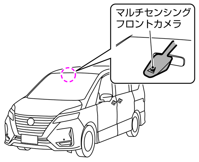 フロントガラスが汚れていたり、マルチセンシングフロントカメラの前が障害物でふさがれていたり、カメラが前方を撮像できないとき、アドバンスドドライブアシストディスプレイに「ヘッドランプ警告」の警告メッセージ(ヘッドランプ警告)が表示されることがあります。
