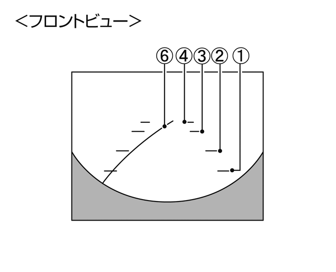 (3)前端目安ラインと側方目安ラインの延長線は、緑色の破線で表示します。