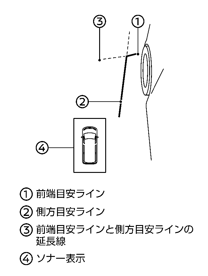 (1)前端目安ラインは、車両前部の位置の目安を示します。