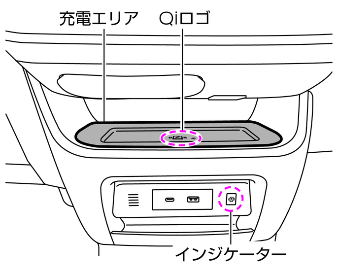 金属物やインテリジェントキー、メモリードライブなどを充電エリア内に置かない。
