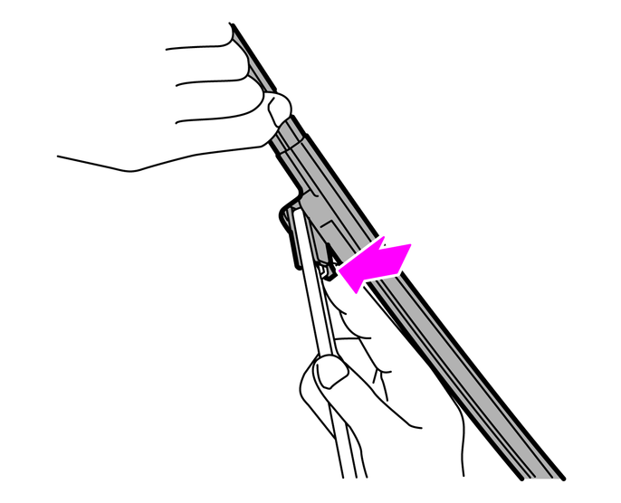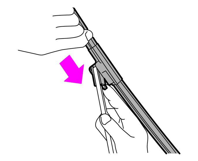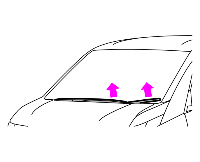 交換するときは、ワイパーアームおよびワイパーブレードがガラスに当たらないよう気を付けてください。ガラスに当たるとガラスが破損するおそれがあります。