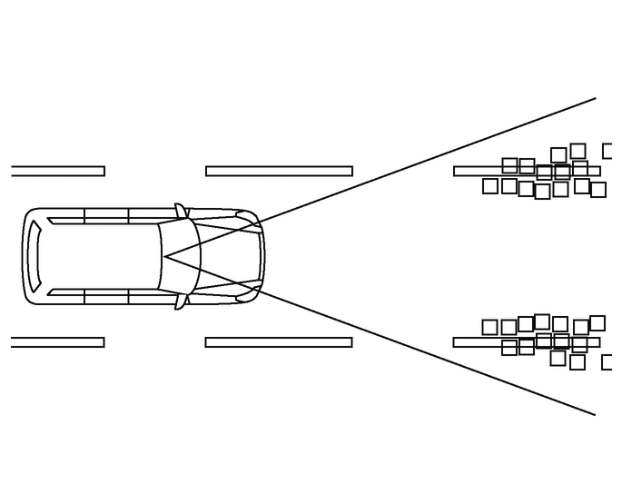 フロントガラス上部のマルチセンシングフロントカメラにより走行車線のレーンマーカーを検知します。