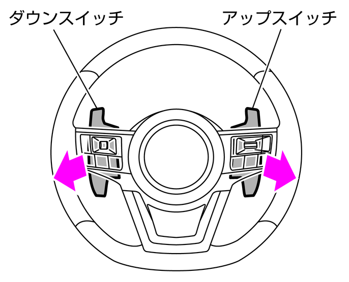 シフトポジションがDで走行中(約10km/h以上)のとき、パドルシフトで切り替えられます。