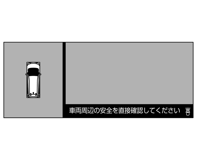 インテリジェント アラウンドビューモニター作動中に、次のような画面表示が続く場合は、カメラシステムの異常が考えられます。通常走行には支障はありませんが、日産販売会社で点検を受けてください。