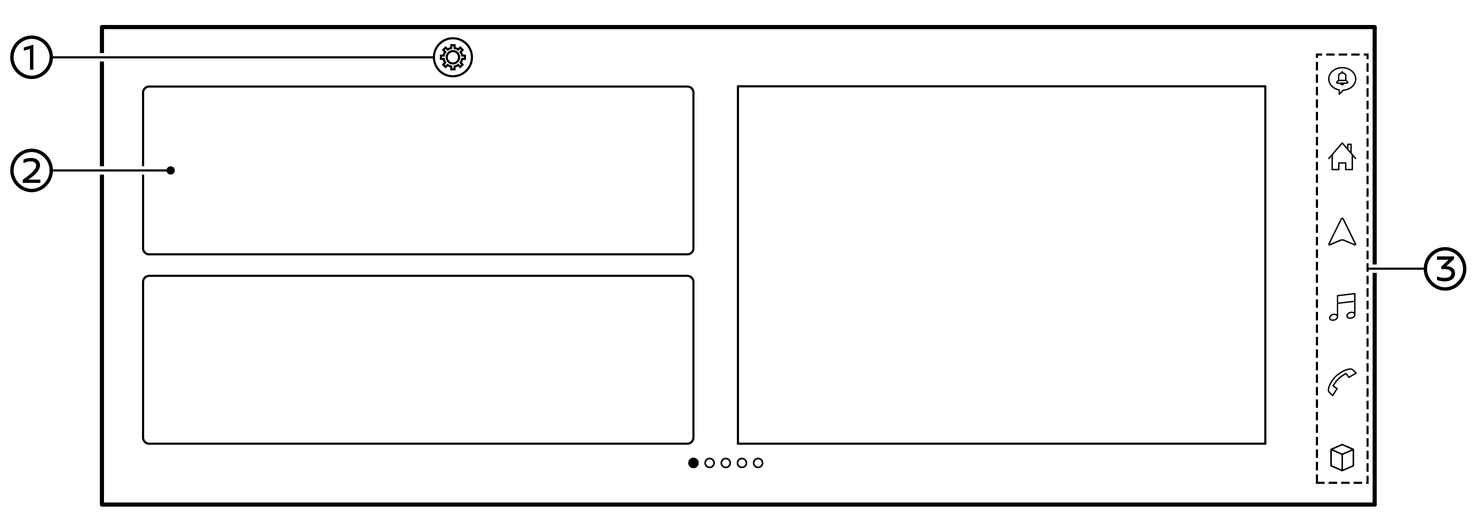 メニュー画面には、車両や機能の情報を表示したり、ショートカットとして各機能へ遷移できるウィジェットが表示されます。メニュー画面はお好みに応じて編集することができます。