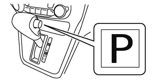 パーキングブレーキがかかっていることと、セレクトレバーがPに入っていることを確認します。