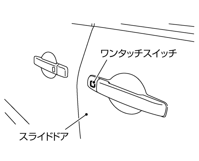 施錠時でもキー(インテリジェントキー)を携帯していれば、スイッチを押すだけでスライドドアを開けることができます。このとき全ドアが同時に解錠されます。