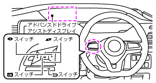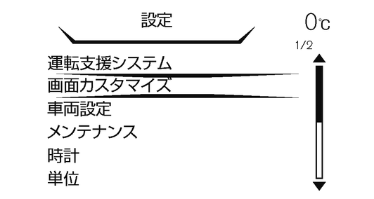 表示させたい項目を、ステアリングスイッチのスイッチで選択し、スイッチを押して選択すると表示できるようになります。