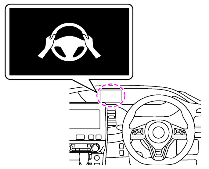 運転者がハンドルを持っていない、または操作していない場合、アドバンスドドライブアシストディスプレイに手放し警告が表示されます。