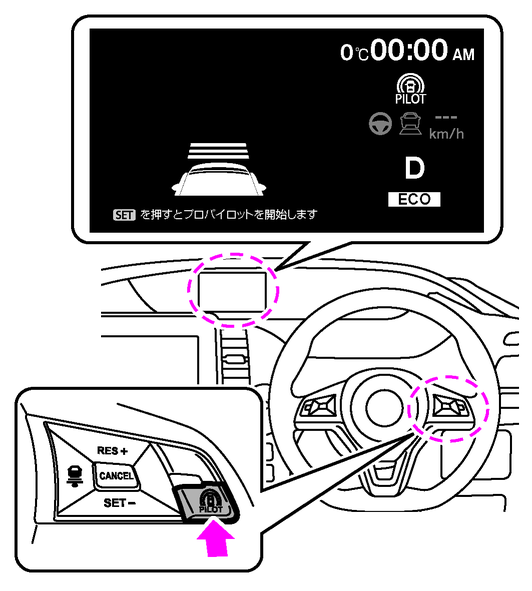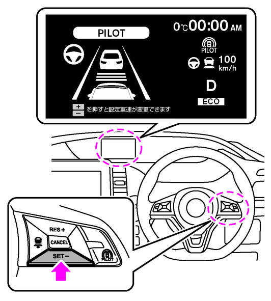 ・スイッチを押したときの速度が設定速度になり、プロパイロットの制御が開始します。