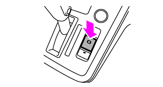 電動パーキングブレーキスイッチを押し下げます。 スイッチを押し下げると、電動パーキングブレーキスイッチの表示灯が消灯し、電動パーキングブレーキが解除されるとメーター内の電動パーキングブレーキ警告灯(赤色)が消灯します。