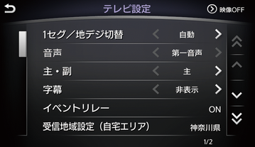 地デジ時:第一音声~第十六音声に切り替えます。 1セグ時:第一音声~第二音声に切り替えます。 |