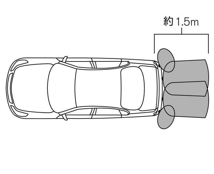 ソナーは、リヤバンパーから約1.5m以内の障害物を検知します。