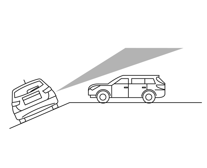 レーダーセンサーは、約15m先から近づいてくる車両を検知します。