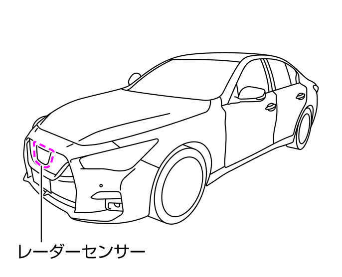 車両前部に取り付けられたレーダーセンサーにより前方の車両との距離を計測します。