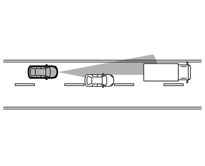 次のような状況では先行車の検出が遅れる、または検出ができないことがあります。運転者は常に前方の状況に注意し、必要に応じてブレーキやハンドルを操作してください。