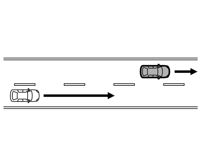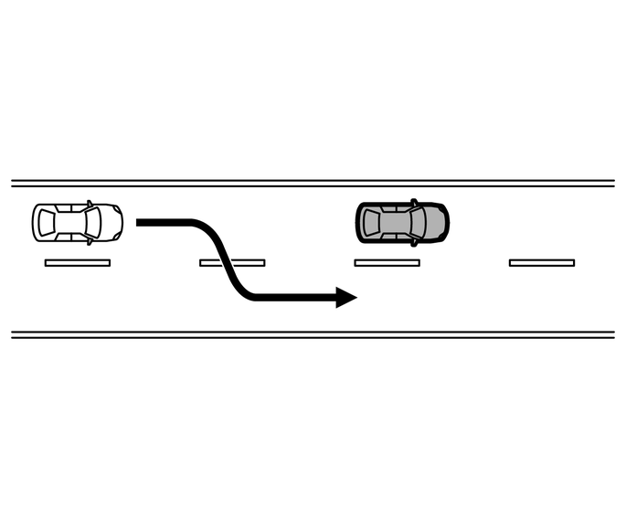次のような状況では隣の車線の車両の検出が遅れる、または検出ができないことがあります。運転者は常に周囲の状況に注意し、必要に応じてハンドルを操作してください。