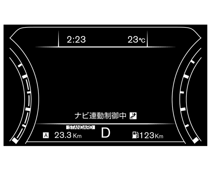 が点灯しているときは、アドバンスドドライブアシストディスプレイに「ナビ連動制御中」と表示されます。