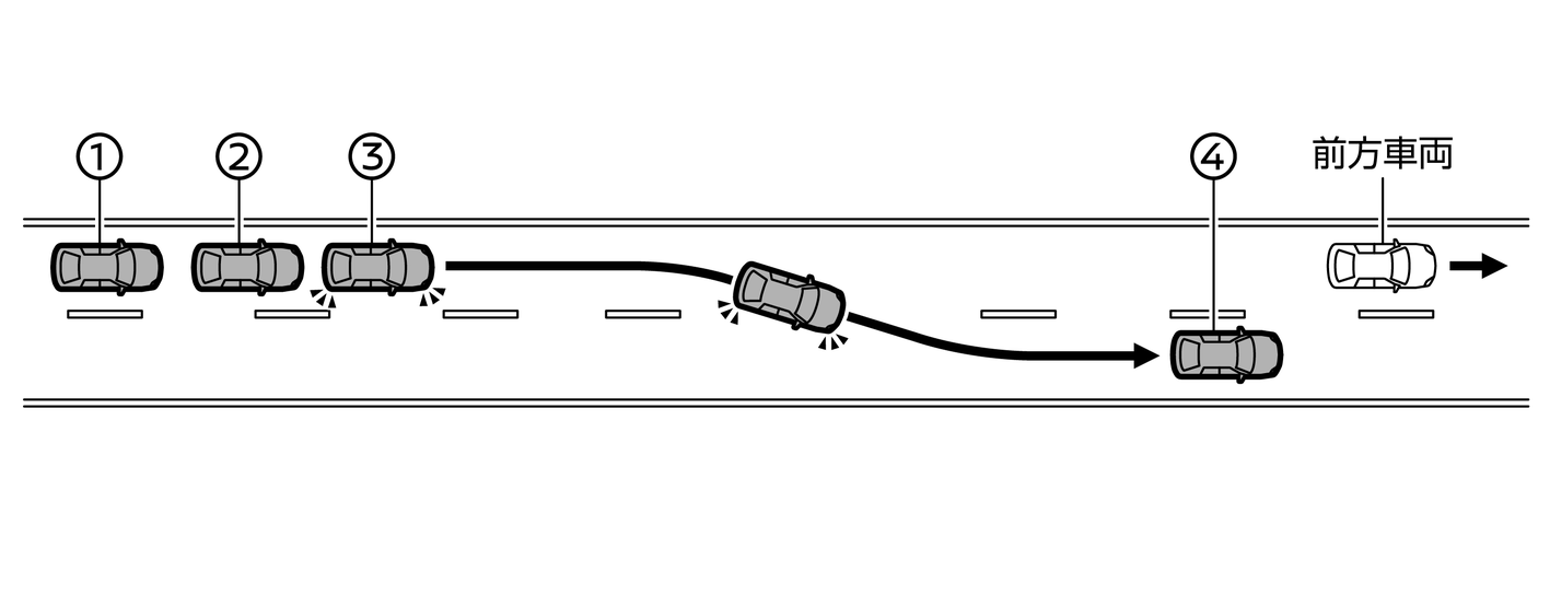 追い越し支援機能により、遅い車両を追い抜いたとき
