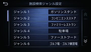 MENU → 設定 → ナビゲーション → 施設ジャンル設定でも設定することができます。