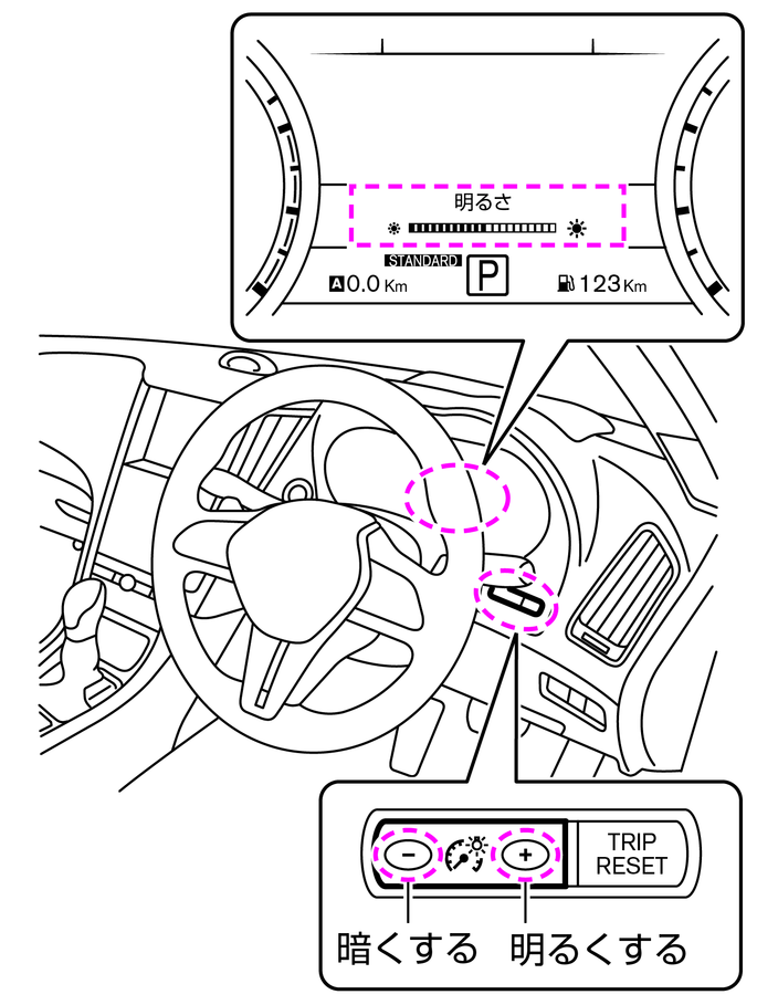 明るさのレベル表示は、アドバンスドドライブアシストディスプレイに表示されます。
