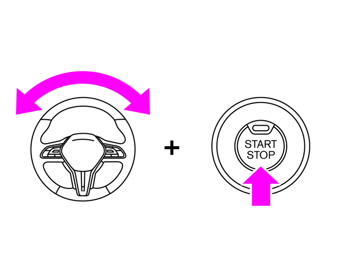 ハンドルがロックされていても、数mm~数cmだけ動かすことができます。その範囲内でハンドルを左右にゆっくり回しながらパワースイッチを押してください。