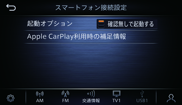 iPhoneを接続したとき、自動でApple CarPlayTMを起動します。 |