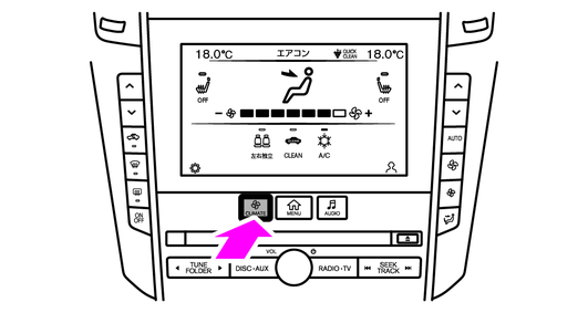 以下の手順を行うことにより、内気循環/外気導入を自動制御モードに切り替えます。