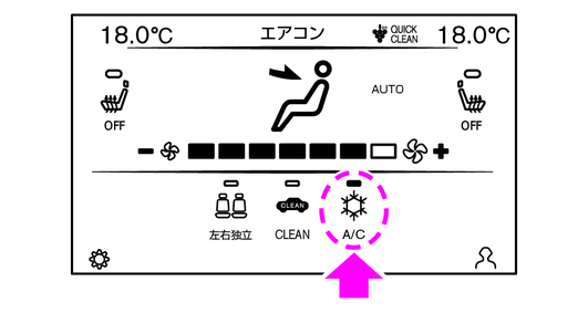 A/Cの表示灯が消灯しているときは、A/Cをタッチして点灯させます。