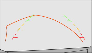 予想進路線はリヤワイドビュー、ハンドルが中立位置のリヤビューには表示されません。