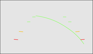右画面にフロントビューを表示している場合には予想進路線(緑色)を表示します。