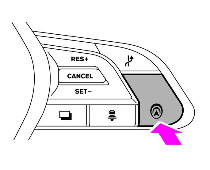 ナビゲーションシステムでシステムをONに設定していると、プロパイロット2.0スイッチでシステムのON・OFFを切り替えることができます。