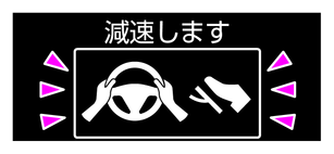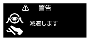 警告後、運転者のハンドル操作が検出されない場合、緊急警報音が鳴るとともにヘッドアップディスプレイ、およびアドバンスドドライブアシストディスプレイに「減速します」と表示され、車両を減速、緊急停止させます。