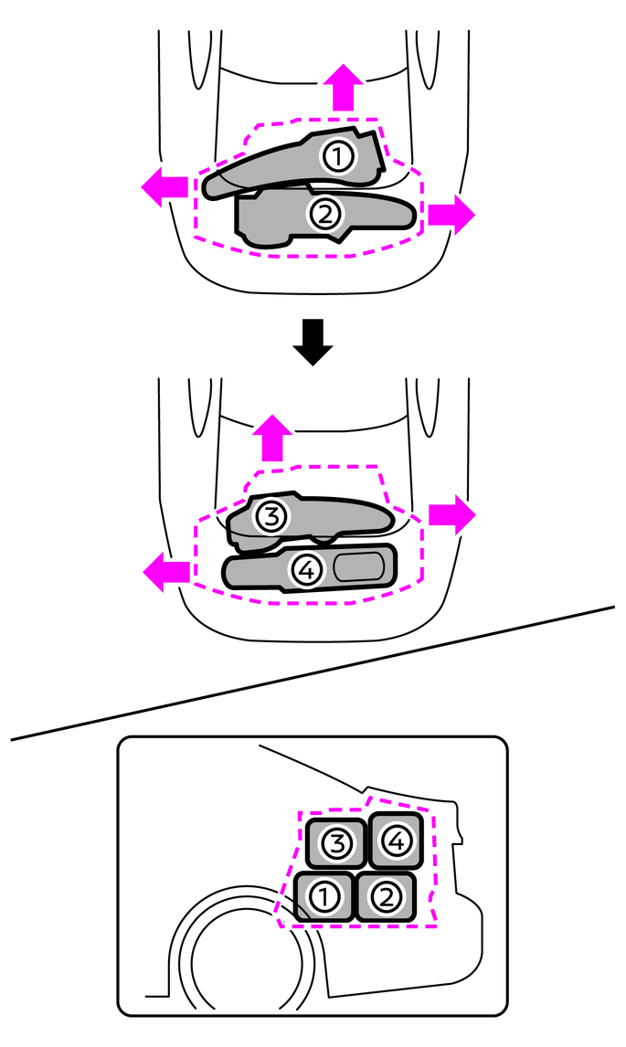 3個目のゴルフバッグのヘッド側を右に向けて入れ、(1)の上に押し込みます。
