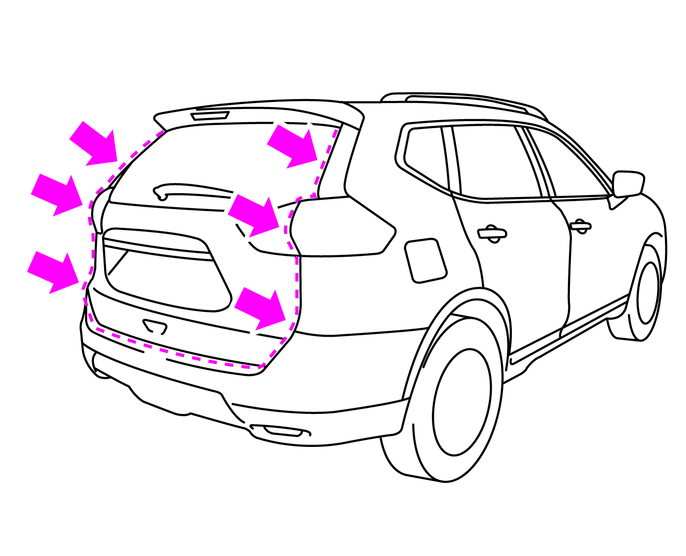 バックドアを閉めるときは、バックドアや車体側に手を触れていたり、ドアグリップを握らない。また、バックドアのふちやその周辺に手をかけない。