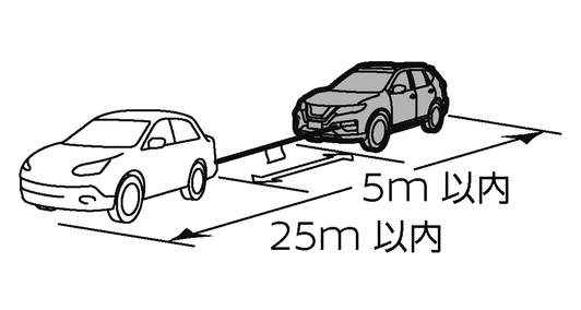 けん引中はロープをたるませないように、前の車の制動灯に注意してください。