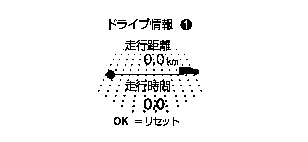 ドライブ情報(1)は、リセットしてからの走行距離、走行時間を表示します。