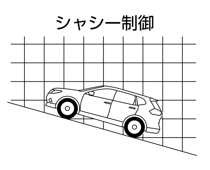 ブレーキペダルを踏んで停止しているときに、ヒルスタートアシストが作動する条件を満たすと、シャシー制御の画面が右図のように切り替わります。