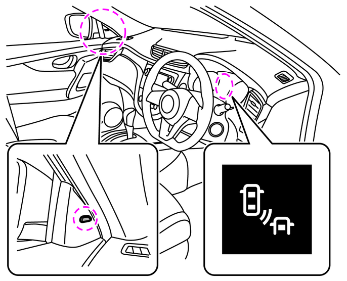 レーダーセンサーにより後方を横切ろうとする車両を検知すると、警報音とともにメーター内のBSW(後側方車両検知警報)/RCTA(後退時車両検知警報)表示と、検知した側のドアミラー付近にある表示灯が点滅します。